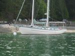 Now, I have the most-cool 42' LOD Alden Schooner "Prudence." She is currently powered with a keel-cooled/dry stacked, 60 HP Isuzu C-240 with a Hurth 2.75:1 gear and a four-blade fixed prop. Prudence is 34' at the waterline, draws 7 feet, 10.5' beam, and weighs 38,000 lbs.