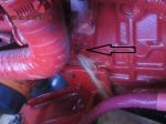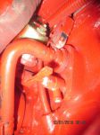 So with the pet**** clogged again we thought we would disconnect the hose on the engine block coming from the water heater and accumulator tank and back to the engine. This hose is on real good and we would need to cut it off. So that is not what we want to do and it is not as low as the pet**** so some fresh water\antifreeze would be left in the block.