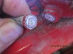 Hurray, we got the pet**** working to drain the water\antifreeze. We had worked the pet**** with Simple Green on the threads we could get and it slowly started to free up. We unscrewed it most of the way out. We then ran the Beta 38 hp for a bit to get the tempter up to 165 deg hoping that the water\antifreeze would break out of the pet****. It did not come out at all. Then we unscrewed the pet**** completely and with the engine off we poked a wire inside the pet****. Then the water\antifreeze came out. It was hot Any way we let it all drain out or what we thought was all of it. We removed the accumulator tanks radiator cap and let the air lock out. Then we opened the radiator cap on the motor after the motor cooled off some.