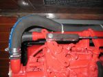 The install of my new Beta 43 into a Tayana 37 sailboat is complete. Overall things went well, but there are three issues which I think Beta can make some changes/improvements. 1: The lower coolant hose was rubbing against the engine mount shaft, and had to be shortened by about 1 inch at the water pump connection. Picture is attached after the hose was shortened. Beta should check the clearance for this hose. 2: At the raw water pump, it would be nice if Beta offered a 90 degree inlet fitting (like the outlet fitting). The attached picture explains why. I will be fitting a 90 degree elbow on the pump to prevent abrasion wear to the inlet hose. 3: Some of the options for mounting locations for the engine throttle control Teleflex cable need to be closer to the throttle. It was necessary for me to add a Teleflex cable extension in order to reach the throttle (easier for me than drilling new mounting holes). Also, I had to attach the Teleflex cable to the inner connection on the throttle in order to achieve full movement from idle stop to full throttle stop. Picture attached. I know every boat/engine setup is a little different, but the Teleflex cables are standard (I think). I know I am sounding a bit negative, but I am actually very happy with the engine. It runs great!